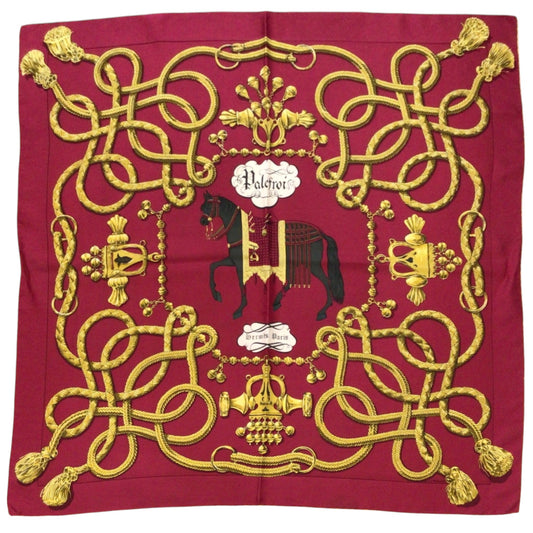 $359.00 Save $-359.00Unit priceperHermes Red / Gold Multi Palefroi Square Silk Twill Scarf