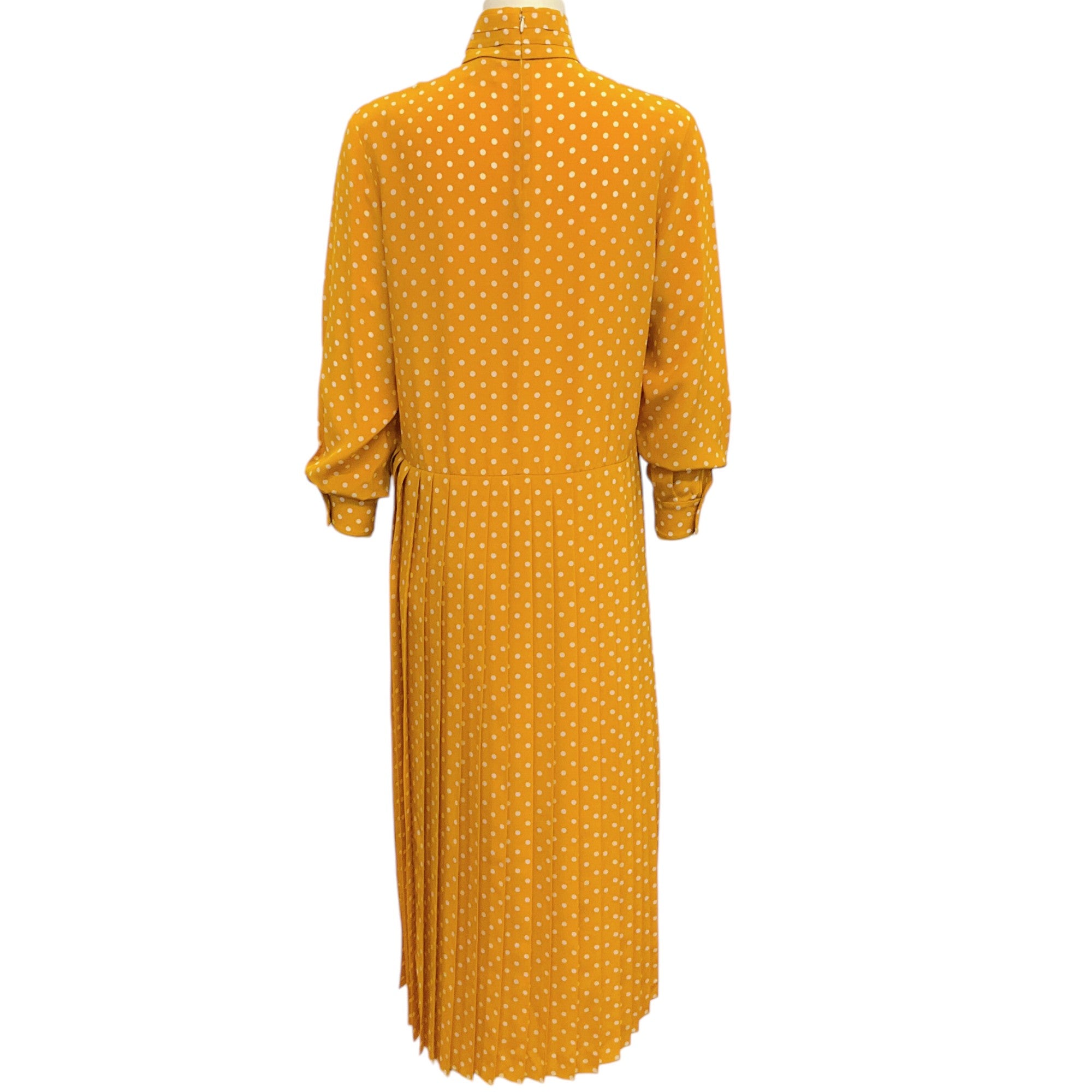 Celine Yellow Silk Pleated Dress with Polka Dots