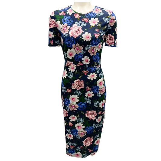 $315.00 Save $-315.00Unit priceperErdem Navy / Pink Essie Floral Short Sleeved Jersey Midi Dress