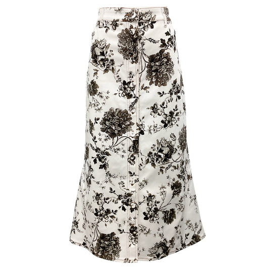 $315.00 Save $-315.00Unit priceperErdem White Victorine Penrose Jouy Denim Printed Denim Midi Pencil Skirt