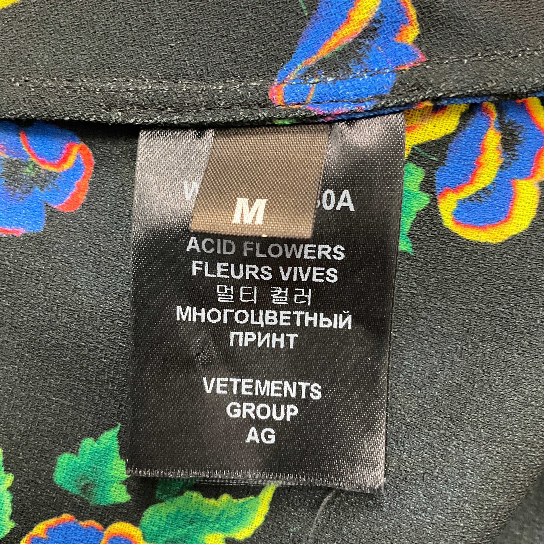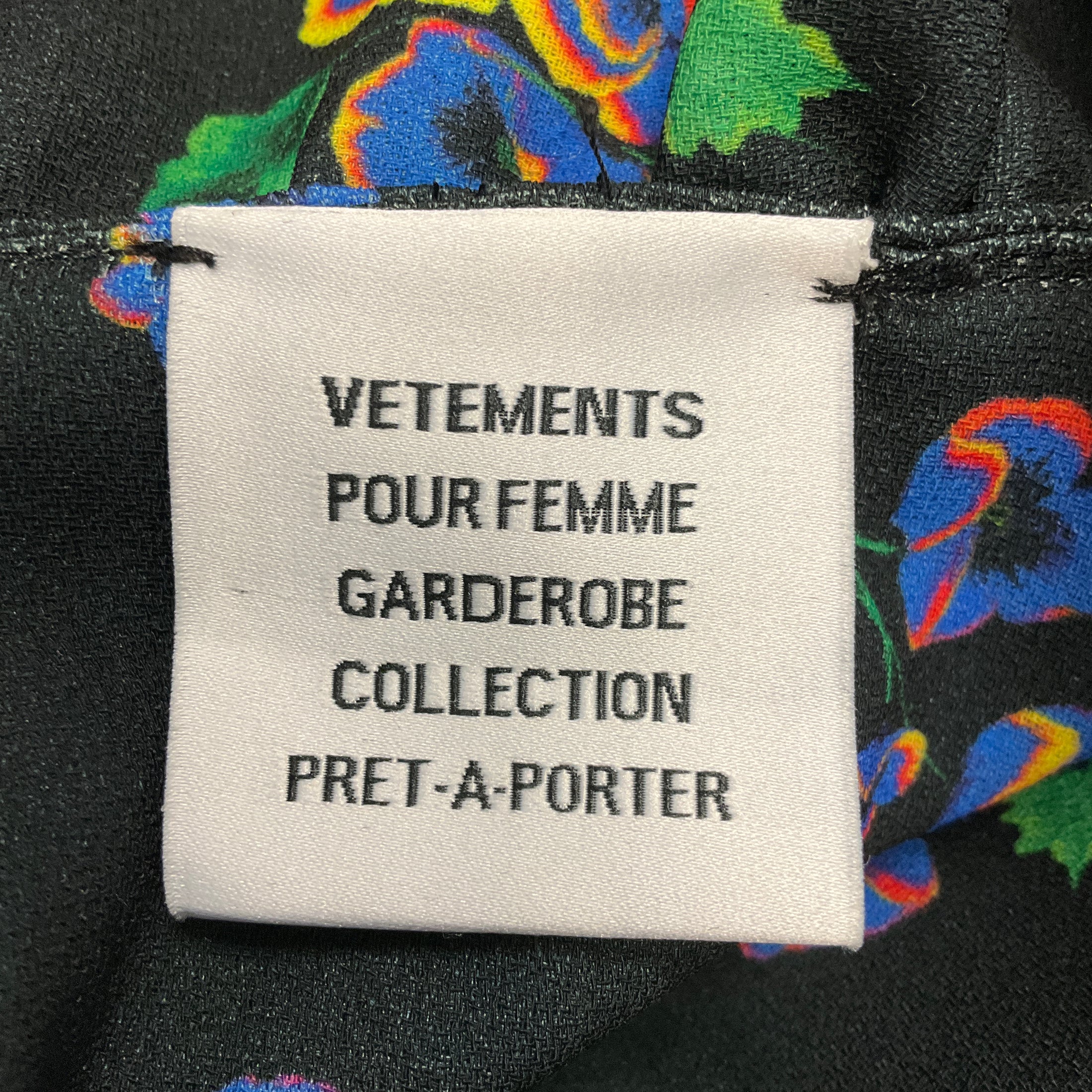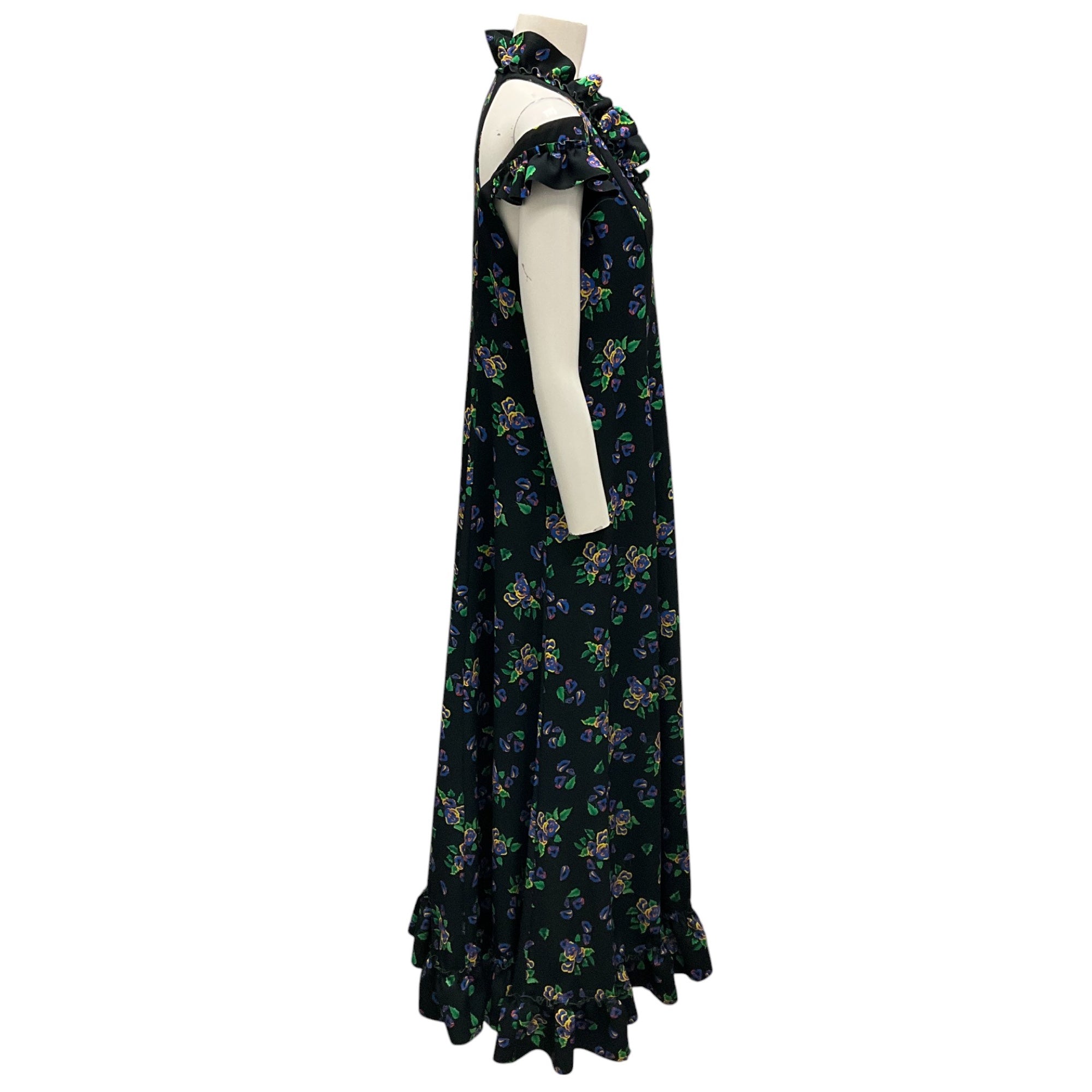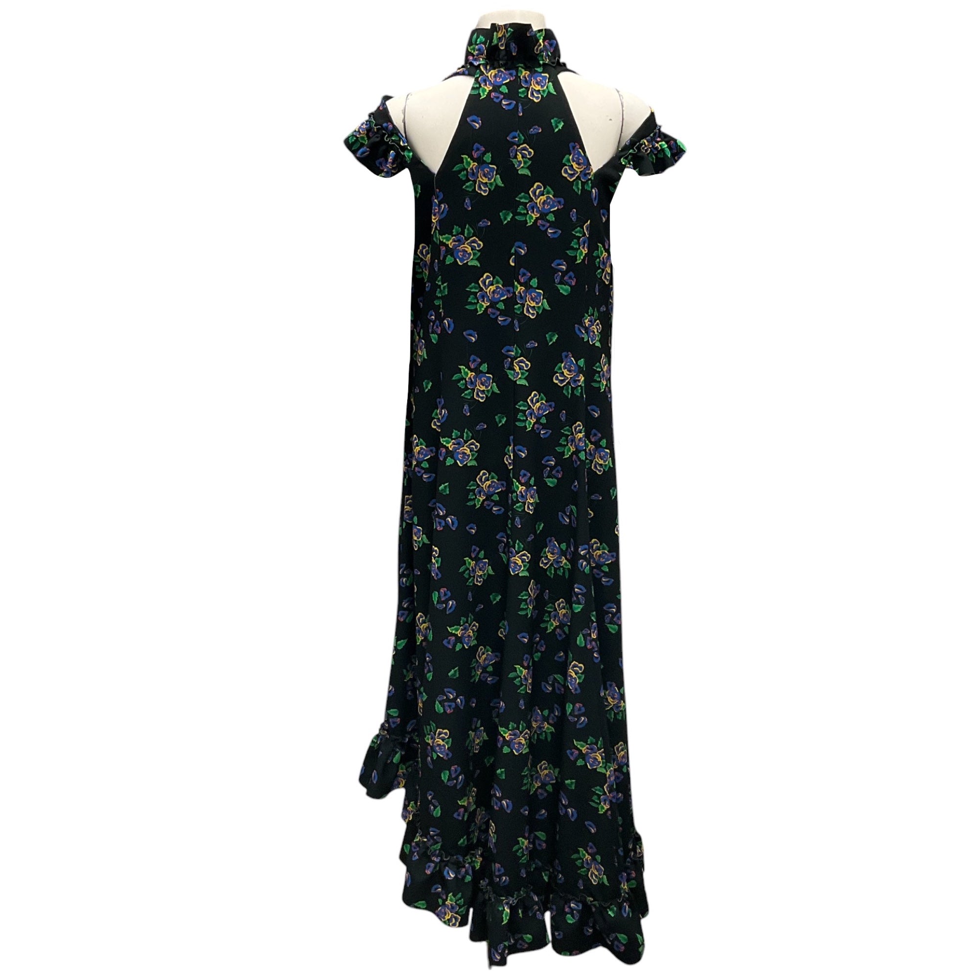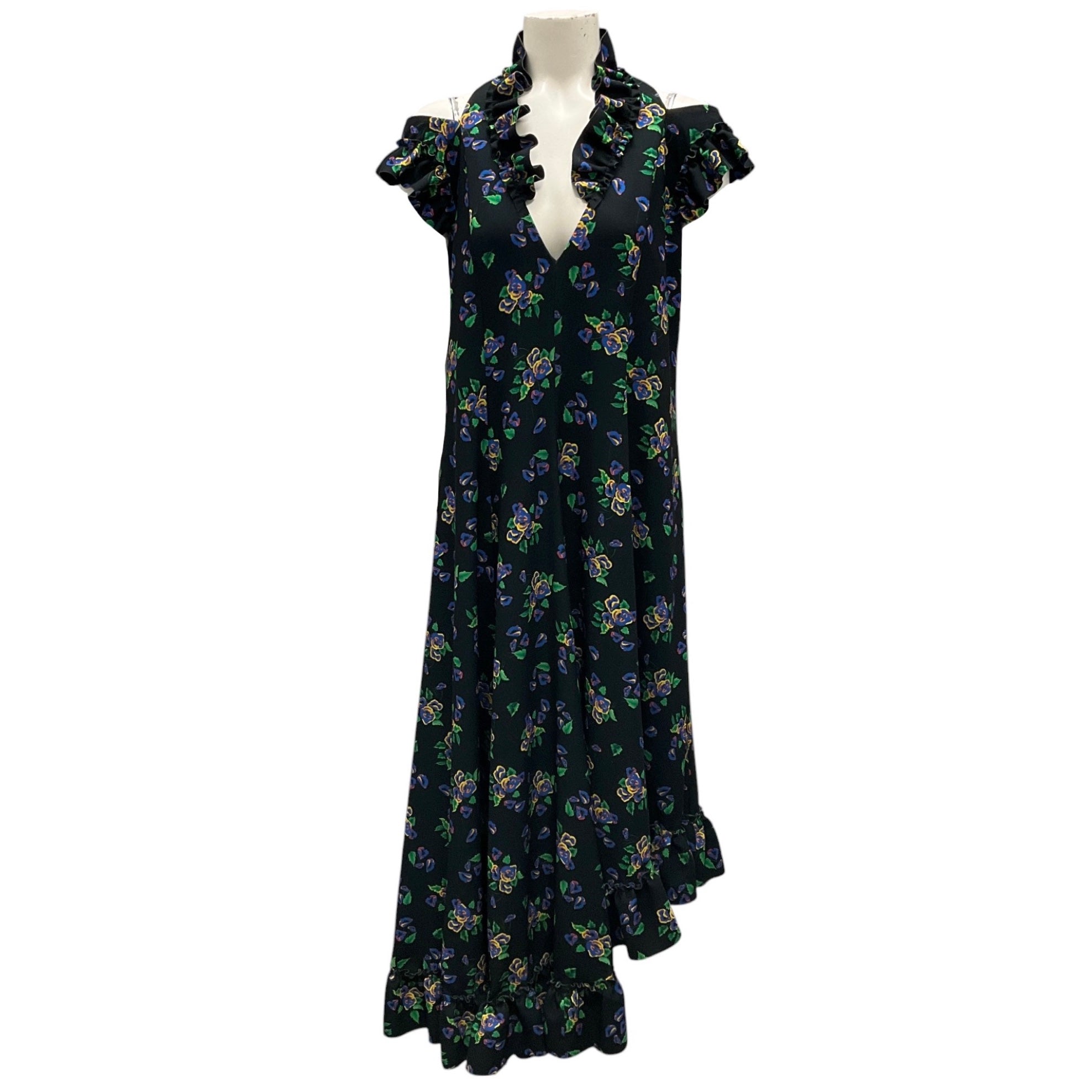 Vetements Black Multi Acid Flowers Printed Ruffled Asymmetric Hem Midi Dress