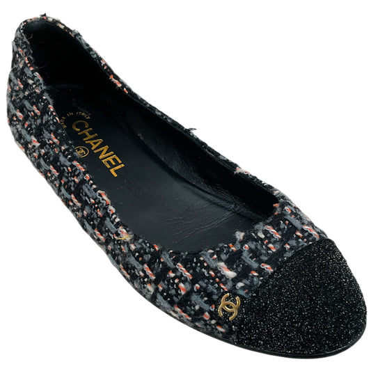 $895.00 Save $-895.00Unit priceperChanel Pink Sequined Flats with Black Grosgrain Cap Toe
