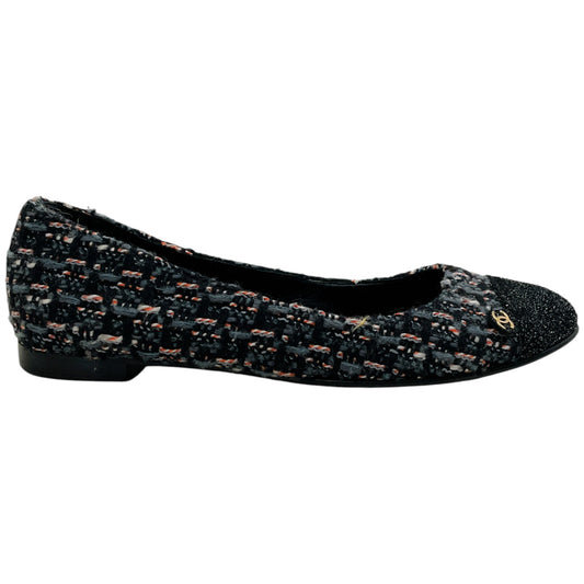 $895.00 Save $-895.00Unit priceperChanel Beige / Black 2020 Pearl Embellished Grosgrain Cap Toe Lambskin Leather Ballerina Flats