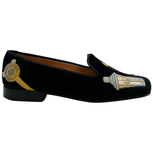 $289.00 Save $-289.00Unit priceperGucci Black / Gold / Silver Horsebit and Chain Detail Pointed Toe Leather Flats