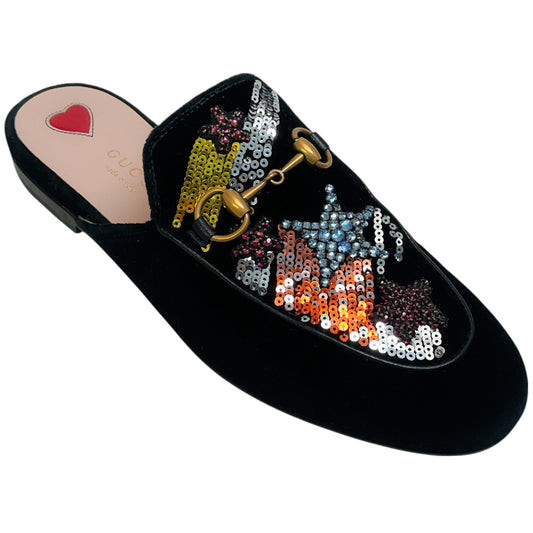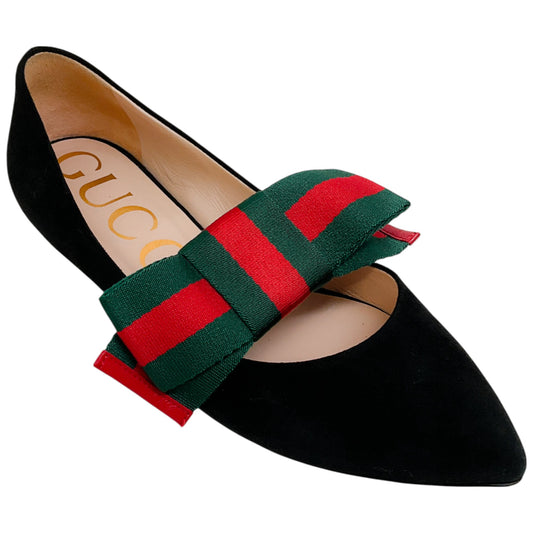 $289.00 Save $-289.00Unit priceperGucci Black / Gold / Silver Horsebit and Chain Detail Pointed Toe Leather Flats