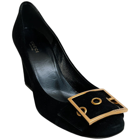 $435.00 Save $-435.00Unit priceperGucci Black Leather Crystal Embellished Block Heel Pumps