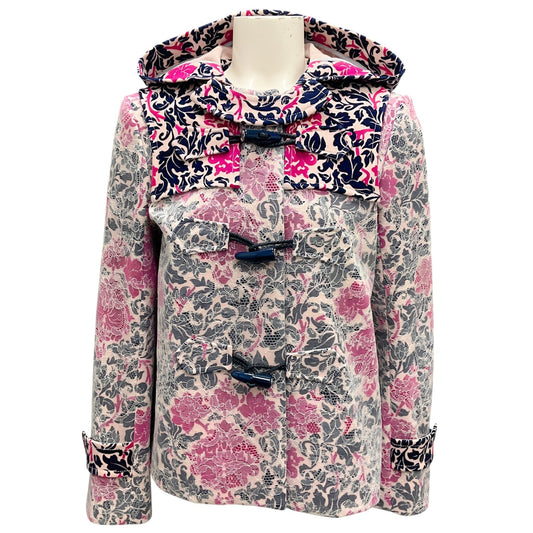 $589.00 Save $-589.00Unit priceperMary Katrantzou Navy Blue Wool Collarless Coat With Multi Print
