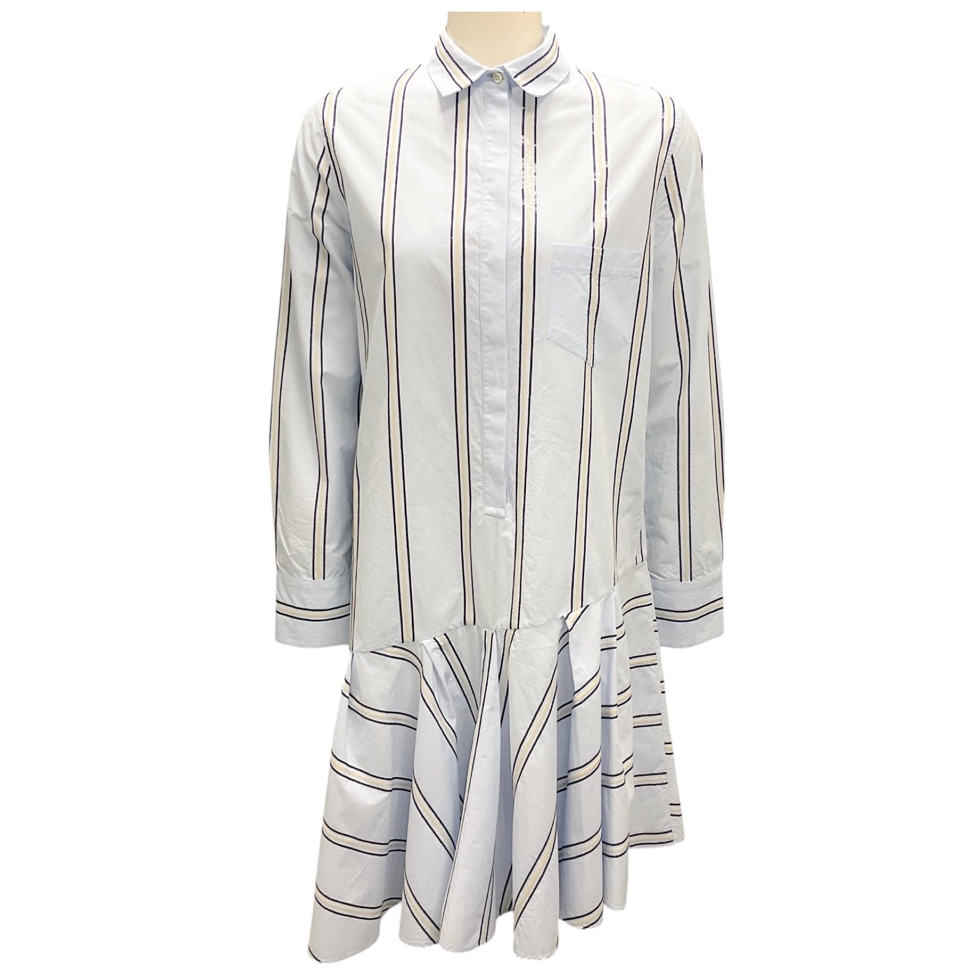 Brunello Cucinelli Light Blue Striped Drop Waist Cotton Shirtdress