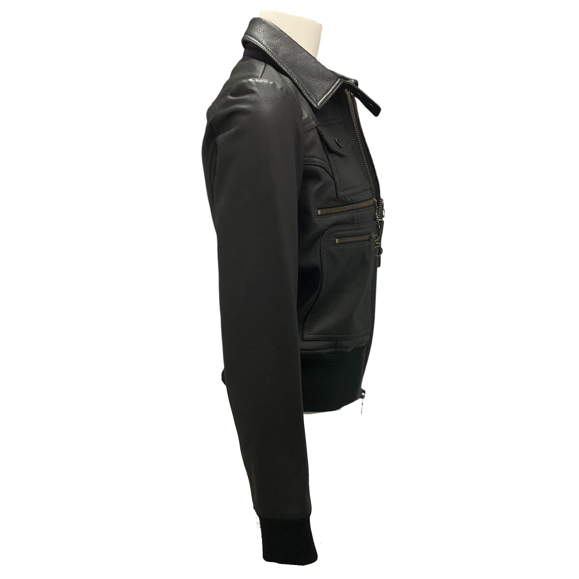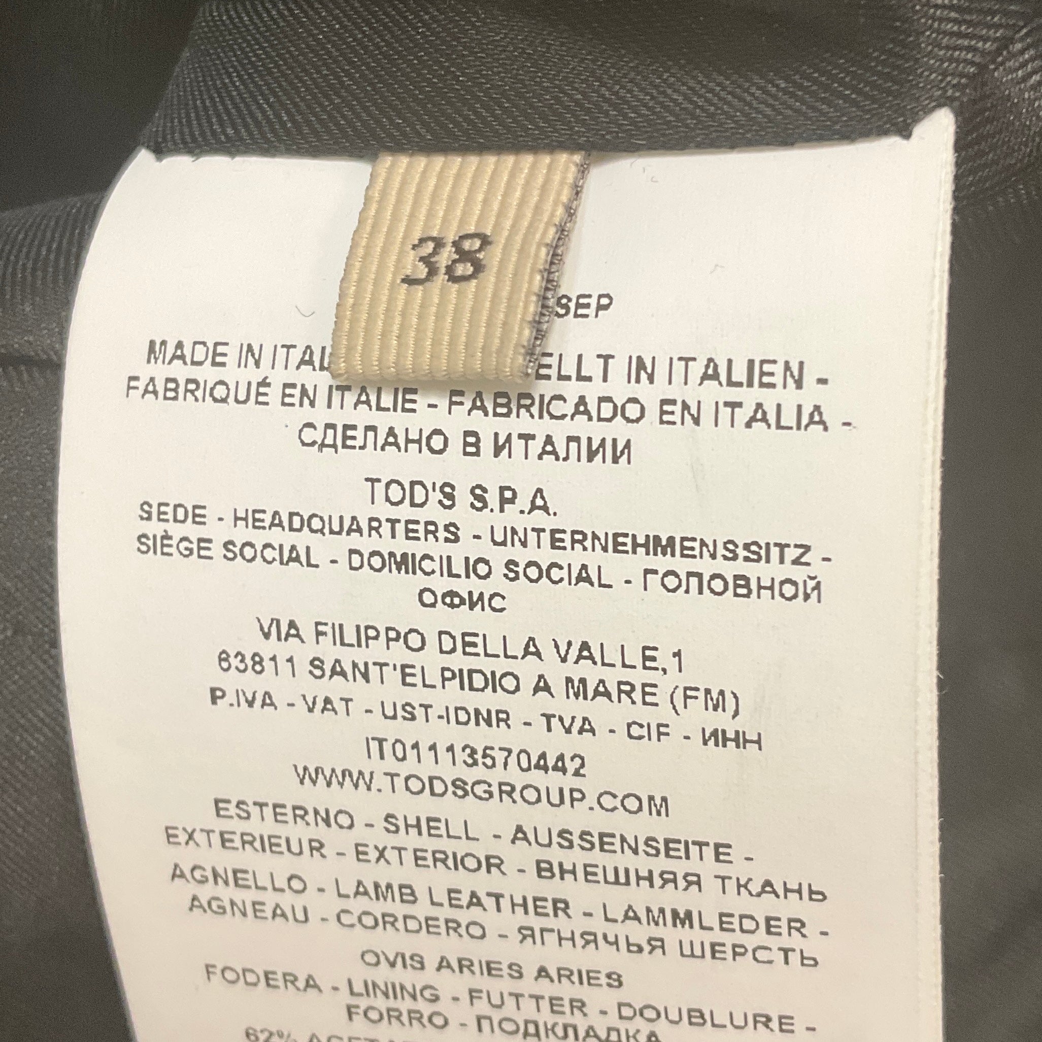 Fabric content: Shell - Lamb leather / lining - 62% acetate, 39% polyester / knit edge - 45% acrylic, 45% wool, 9% polyamide, 1% elastane