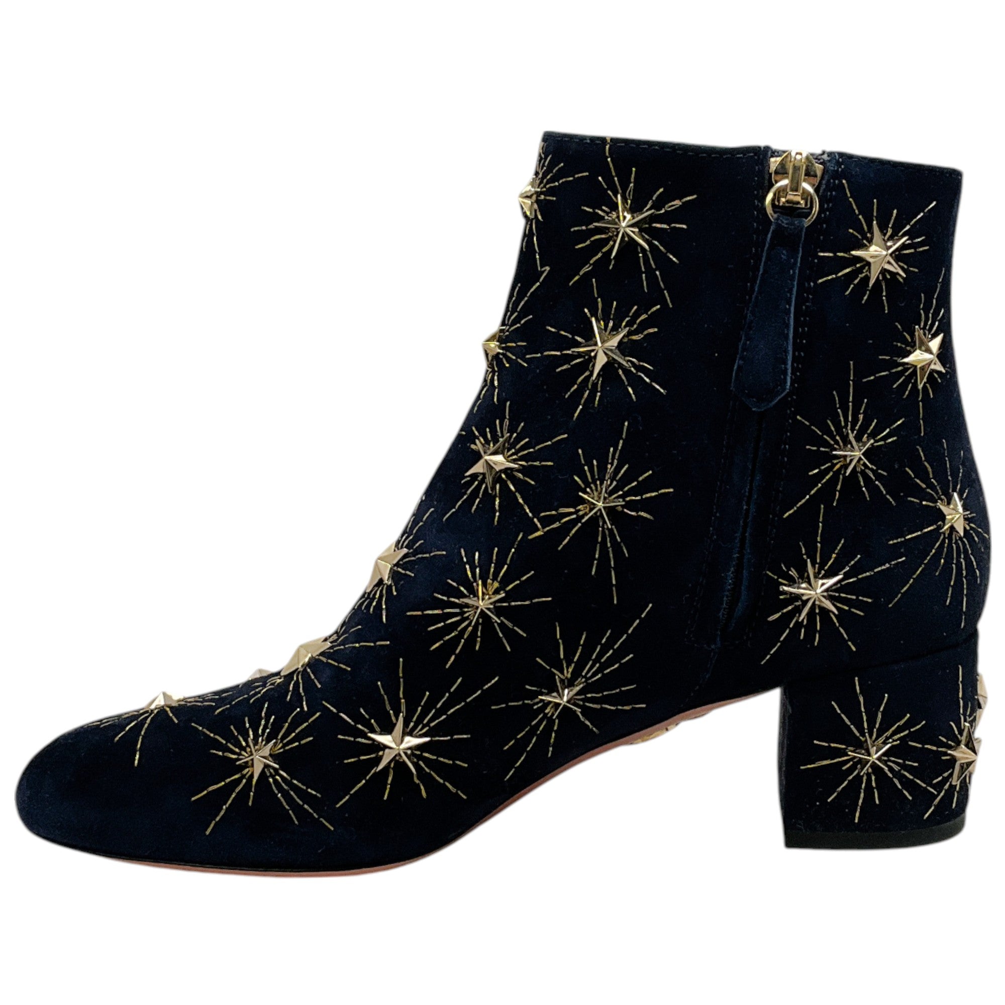 Aquazzura Navy Blue Suede Cosmic Star Booties