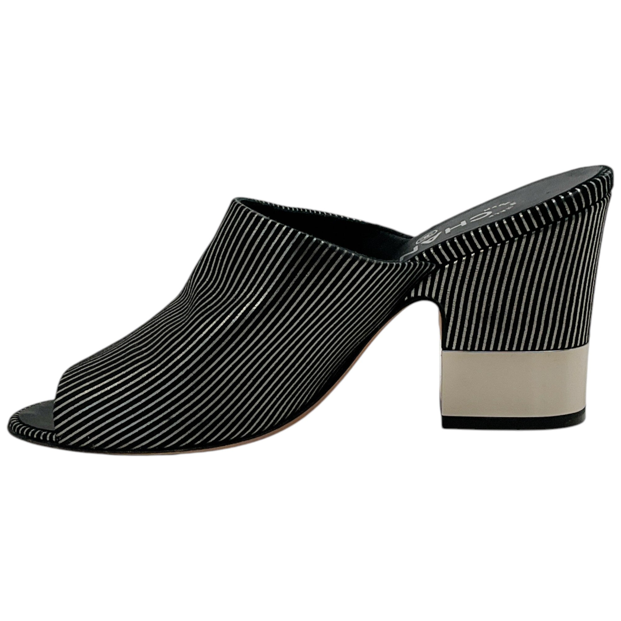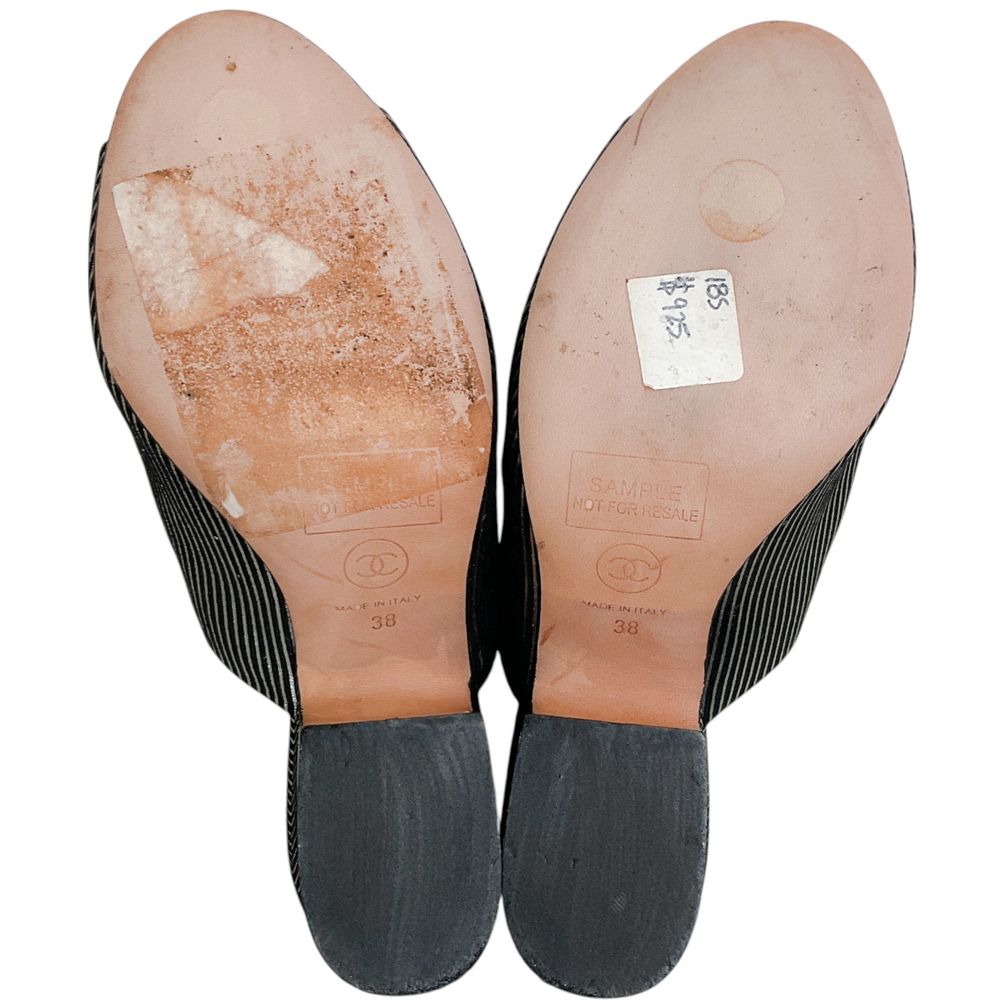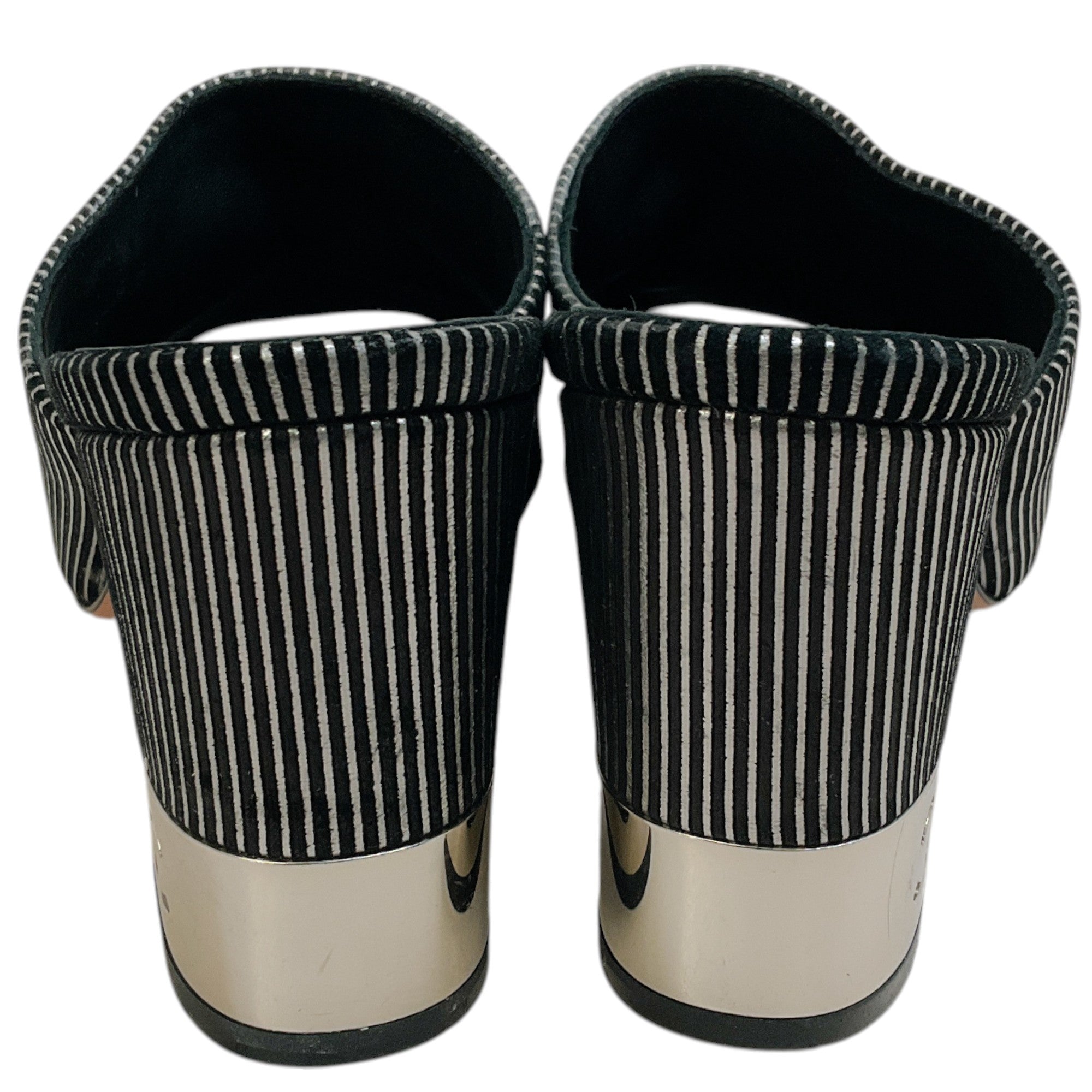 Chanel Black Suede Mules with Silver Stripes