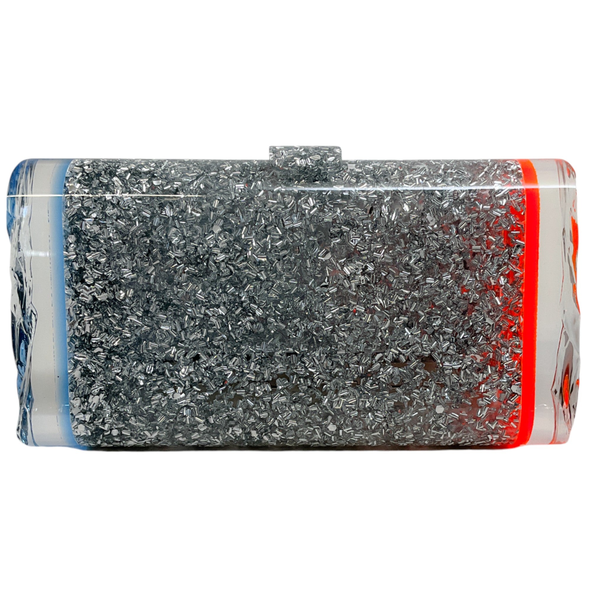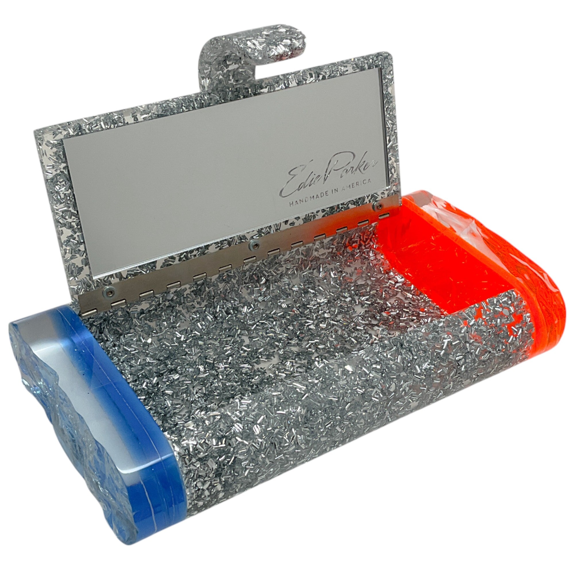 Edie Parker Blue / Orange Silver Glitter Lara Clutch