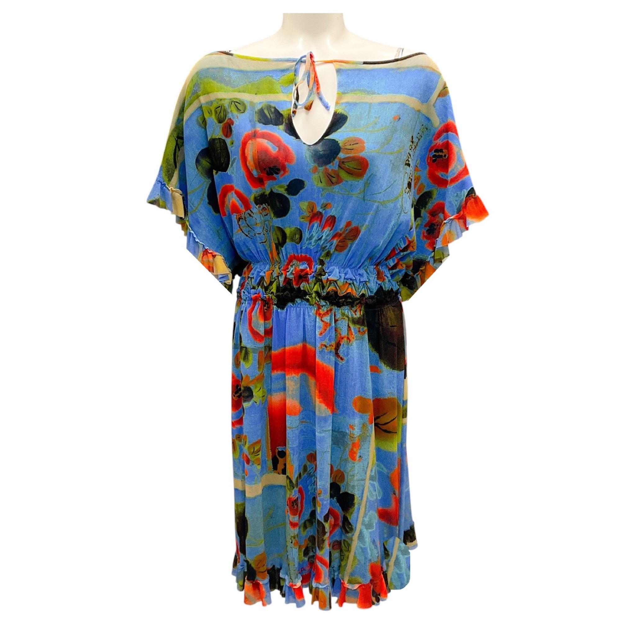 Jean Paul Gaultier Soleil Blue / Orange Multi Ruffled Mesh Dress