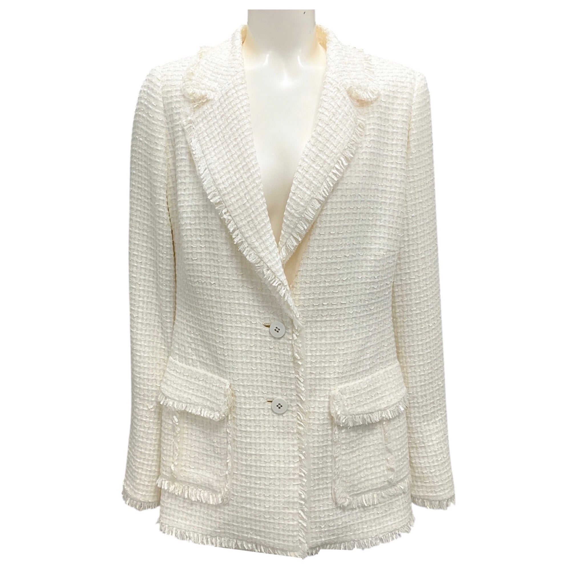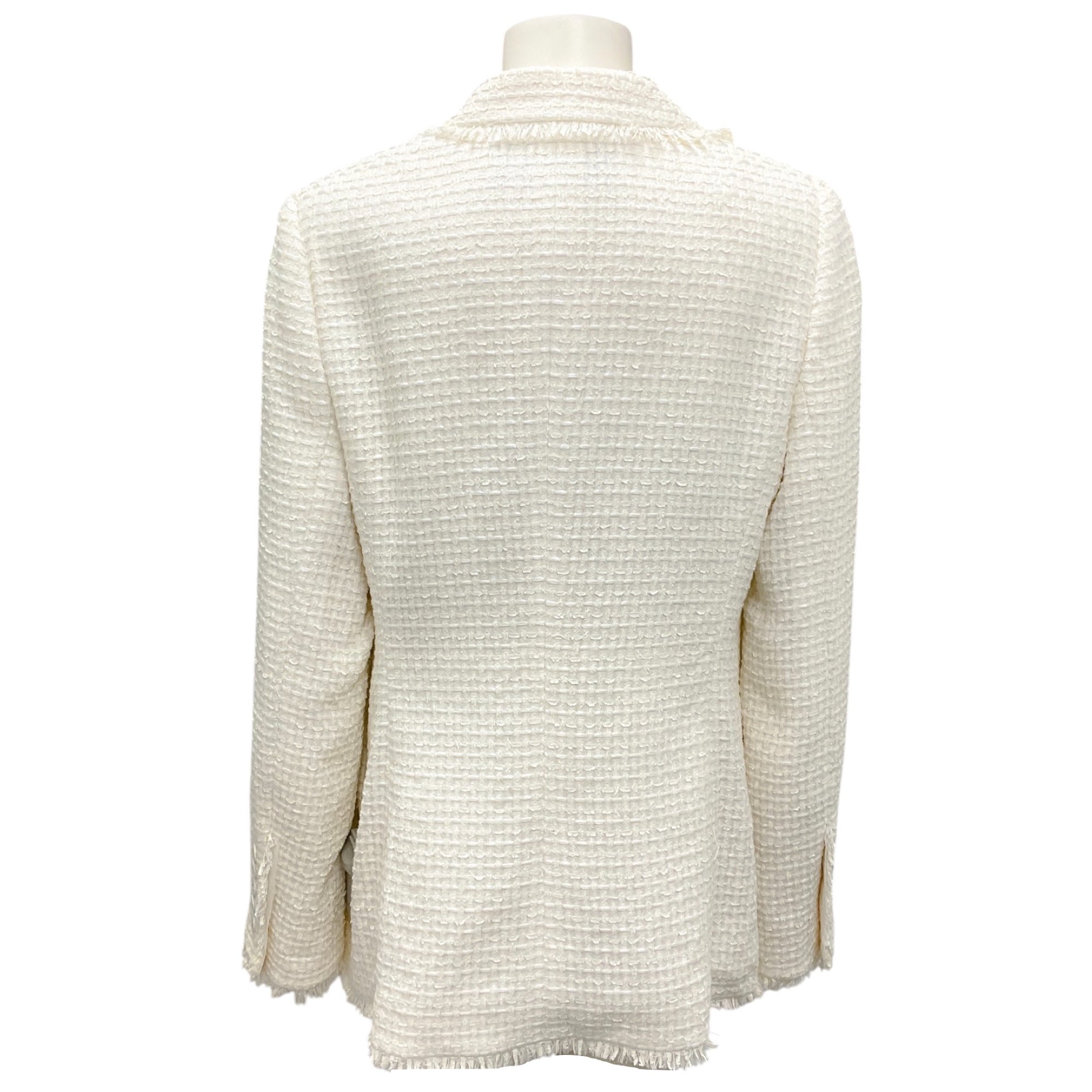 Rena Lange Ivory Fringed Tweed Blazer