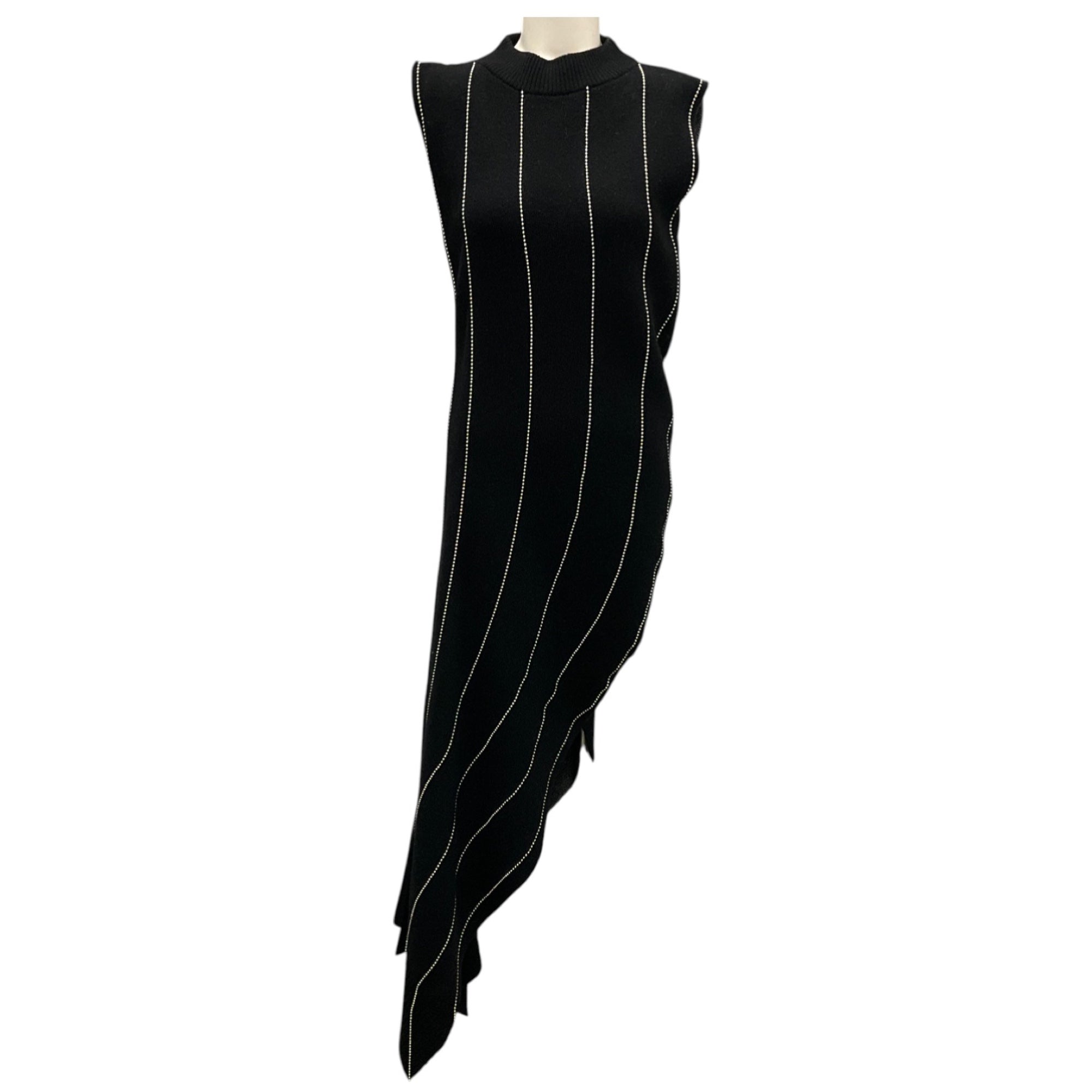 Sacai Black / Silver Ball Chain Sleeveless Asymmetric Wool Knit Maxi Dress