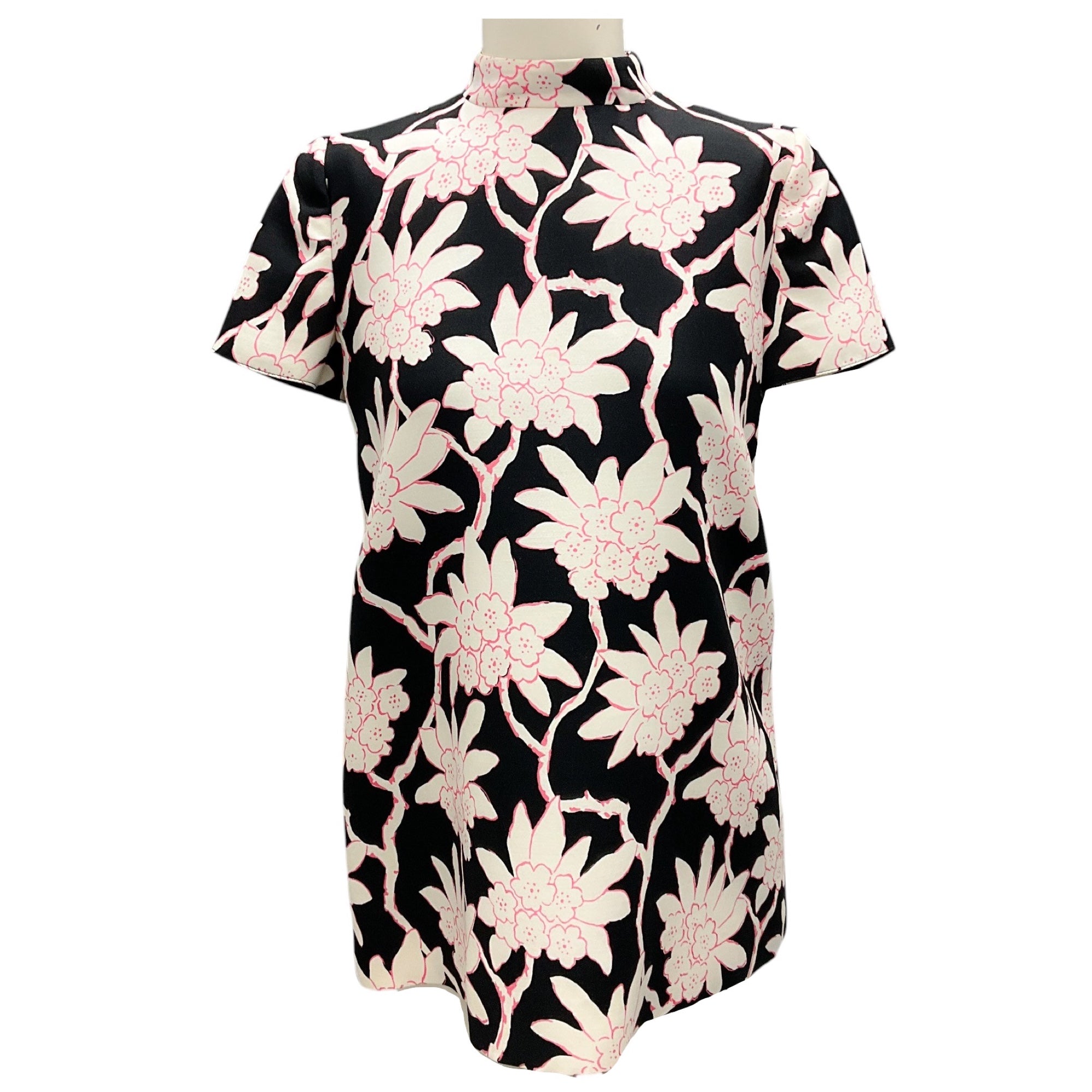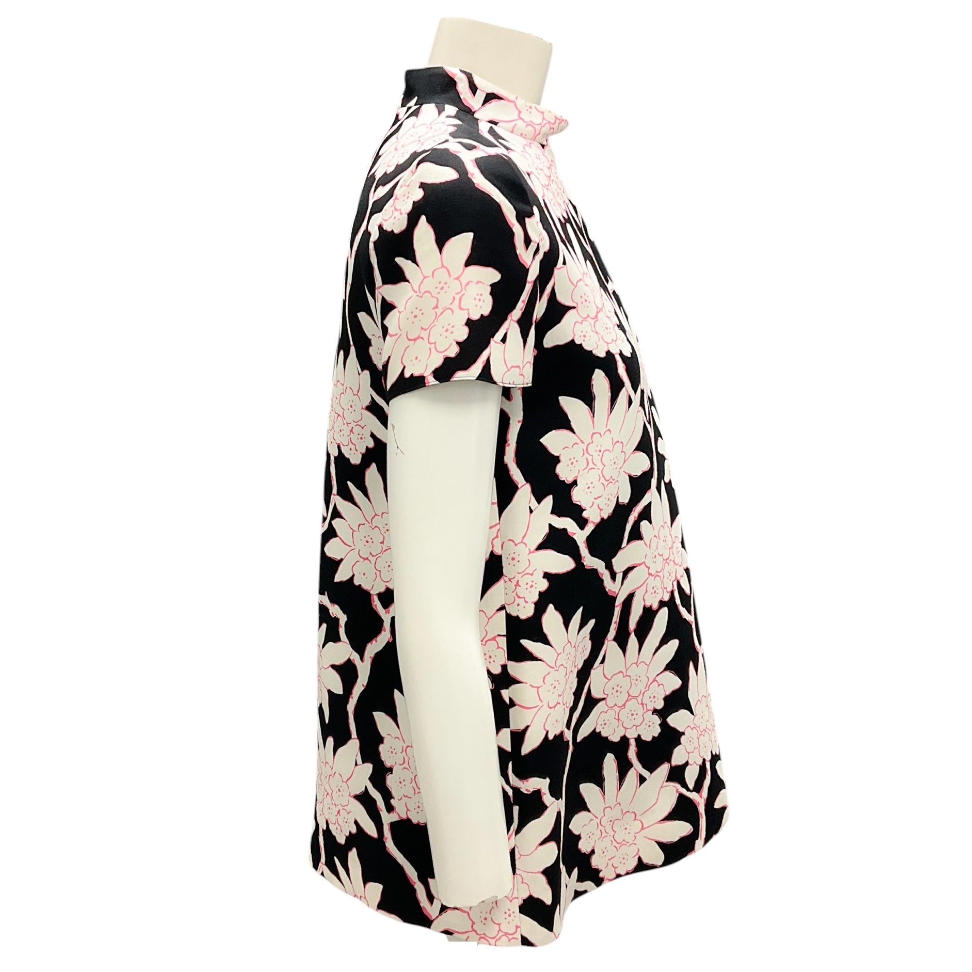 Valentino Black / White / Pink Floral Printed Short Sleeved Top